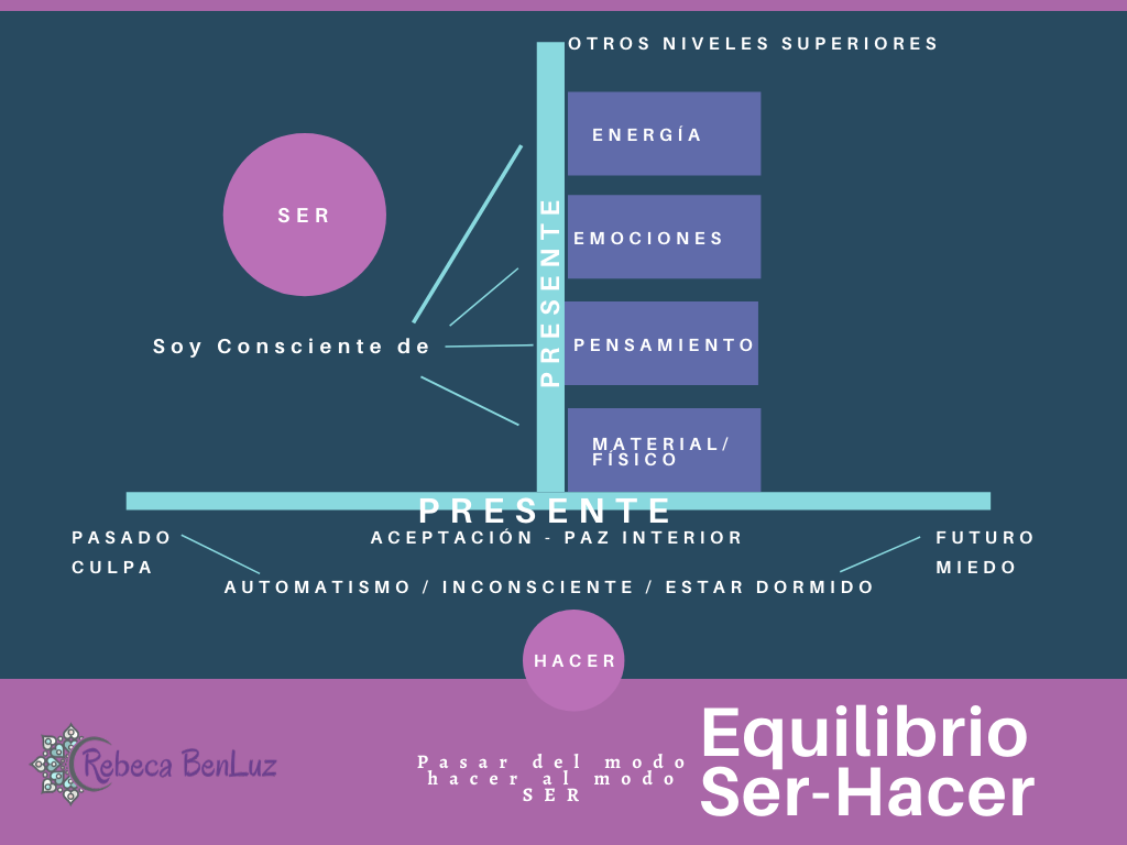 Hacer desde el Ser, significa equilibrar nuestra vida, vivir atendiendo amorosamente nuestras dimensiones y en plenitud. Estar presente en lo que hacemos, en lo que pensamos y en lo que sentimos.