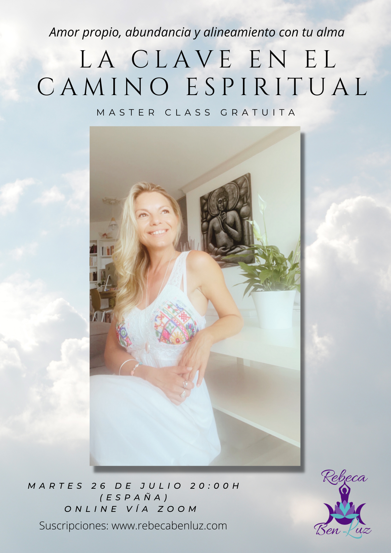 Ya no tienes que conformarte con nada que no sea lo perfecto para ti y retirar de tu vida todo aquello que no esté alineado con esto en tu mente y en tu corazón. Para ayudarte con ello he creado este evento donde mi alma quiere compartir con la tuya la clave esencial que no sólo te sacará de donde estás, sino que te va a servir para cualquier cosa en tu vida, sea en el área que sea.