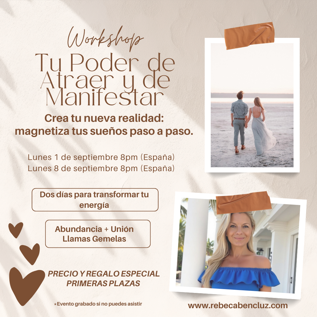 En este taller quiero compartir contigo cómo funcionan la ley de la Manifestación y de la Atracción dentro de ti para magnetizar tus sueños, sean los que sean.
